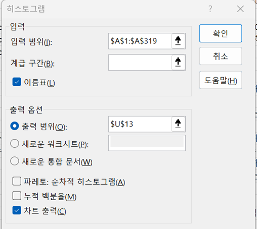 #입력 범위는 보고자 하는 변수 데이터 전체 (라벨 포함)