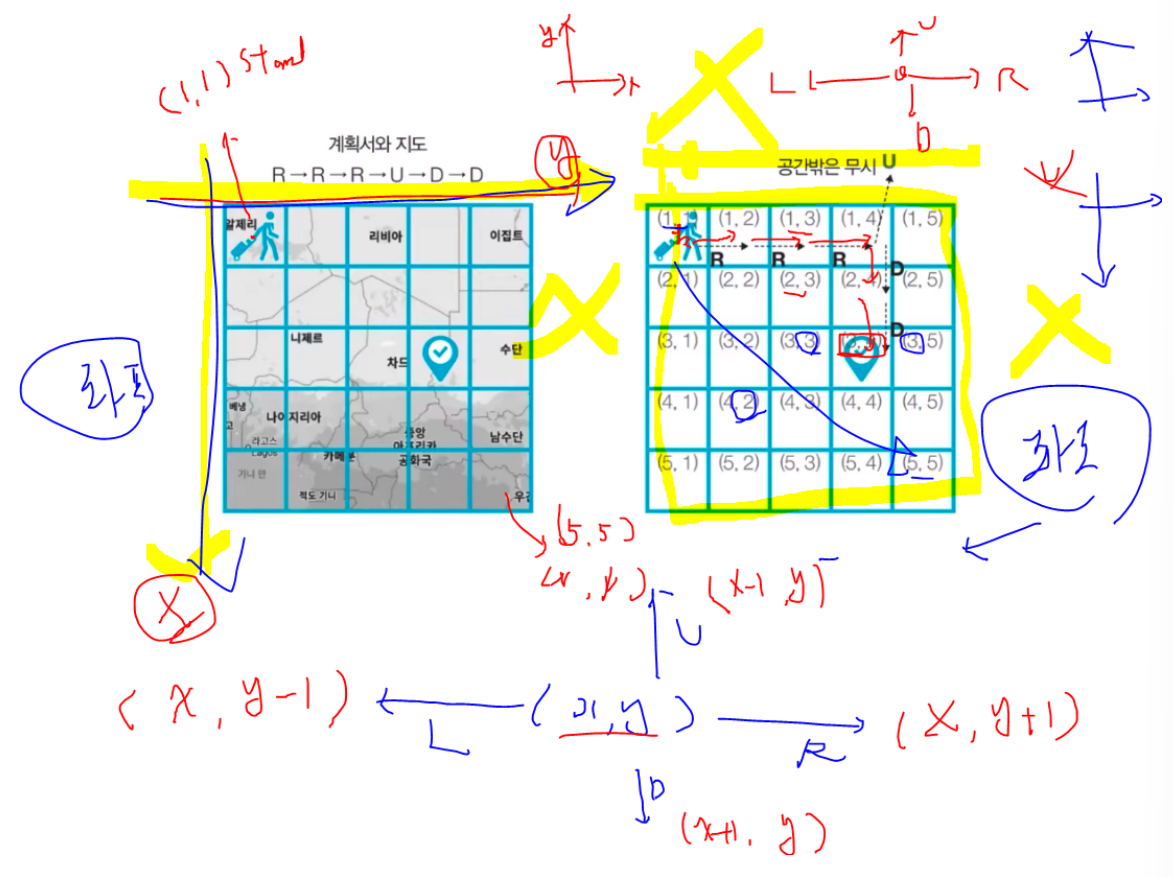 ==> 코드화 : 좌표를 도입을 해서 이동에 대한 표현!!!!!