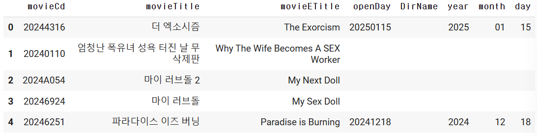 *** 개인별로 아래 영화 상세 정보를 요청해서 DF로 만드는 것을 해보자!